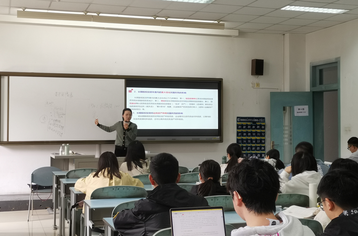 2023年3月31日,投资系所观摩学习吴君凤老师讲授的《财务分析》课程。该课程是投资学专业学生的专业方向课程,是投资学专业财务会计类基础课程体系重要组成部分。吴君凤老师详细讲解了长期股权投资质量分析,介绍了长期股权投资的目的、方向、年度内的重大变化、运用资产种类、收益确认方法对盈利性的影响,课堂教学效果较为突出。