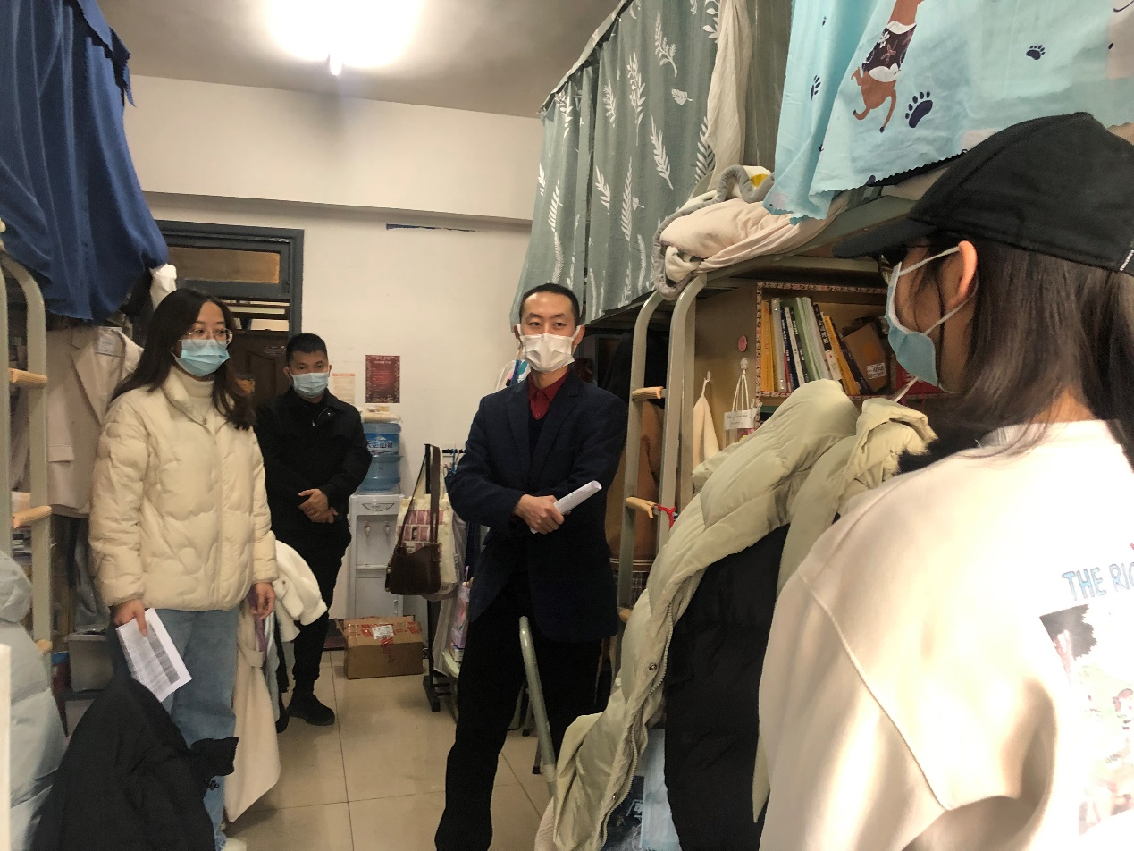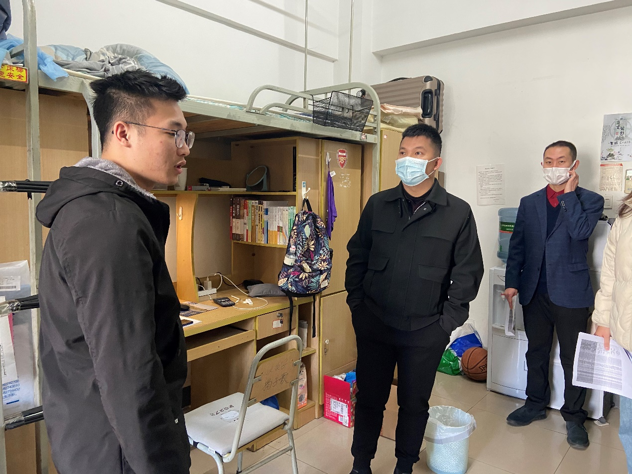 三位老师先后走访了智园、慧园,询问同学们现阶段的学习情况,了解大家对于考研、考公等未来职业道路选择上的困难,解答同学对于疫情防控相关规定、请假和离校方面的问题。同时,针对寝室的安全以及卫生状况,三位老师强调了寝室用电安全,坚决杜绝违章电器,并对相关寝室卫生整改提出要求,希望同学们能积极整理、打扫好寝室卫生。最后,王隆庆向同学们表达了来自学院的关切,希望毕业班同学能够顺利毕业,找到心仪的工作或者考上梦想的大学,学院会给予同学们最大的支持和帮助。
