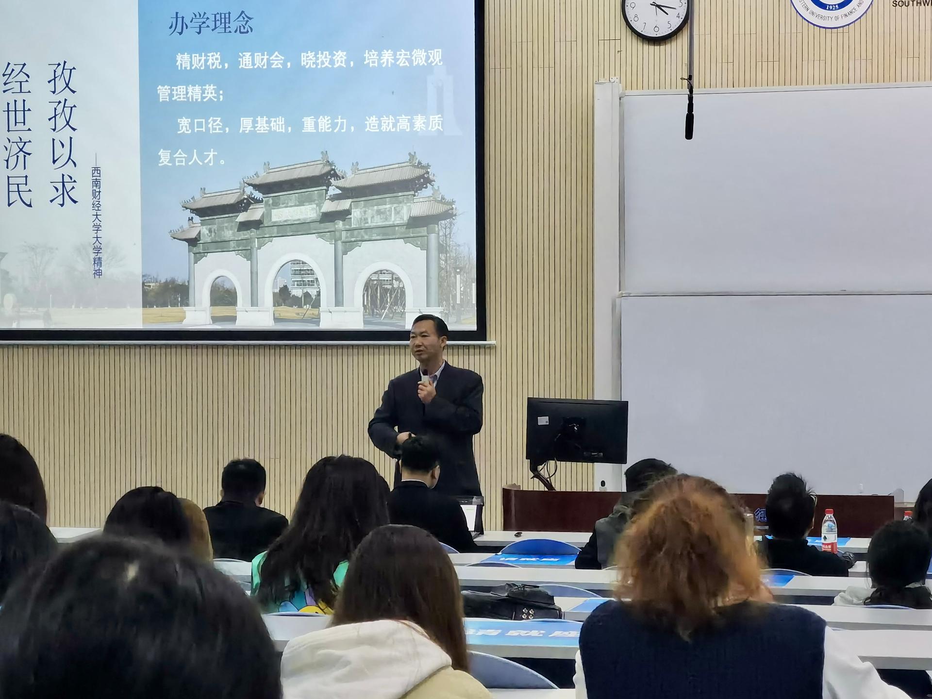何院长向同学们表示热烈欢迎,并从办学理念、学科建设和人才培养等方面介绍了永利yl23411集团官网的有关情况。他指出,2020级的同学们经历了为期一年的通识教育,最终顺利进入到永利yl23411集团官网进行学习,为学院注入了新的活力。在进入专业学院之后,同学们应该更加严于律己,不断学习践行学院“精财税,通财会,晓投资”和“宽口径,厚基础,重能力”的全方位育人标准,培养掌握自主学习能力、辩证思维能力、表达能力、应用能力和创新创造能力,努力成为德智体美劳全面发展的、堪当民族复兴大任的时代新人。