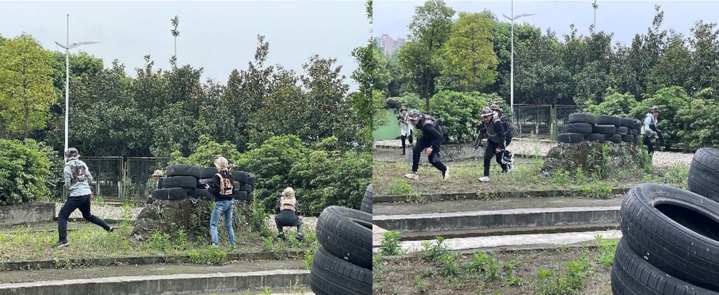 在辅导员张琪老师的指导下,班长董洛妍和团支书刘晓燕同学为大家讲述了 “郭忠田英雄排”零伤亡阻击战、“上甘岭狙神”张桃芳冷枪杀敌、庞国兴三人单挑一个营等党史故事,让大家在素拓开始前了解英雄事迹,以英雄精神激发斗志,全身心投入真人CS战斗中。在焦灼的对战中,双方均未轻言放弃,用实际行动诠释“不抛弃、不放弃”精神,并借助党史故事中的技巧,通过伏击敌方围剿,深入敌营做诱饵争取攻方优势等方式,打造了四场精彩的对战。