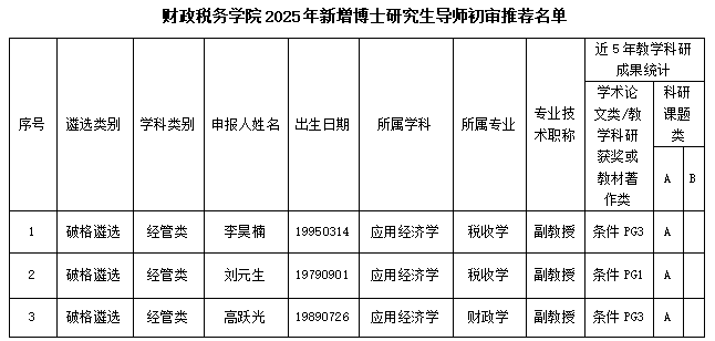 根据《yl23411永利官网登录研究生导师岗位管理办法(试行)》(西财大办〔2023〕19号)要求,经教师本人申请,学院工作人员初审,党政联席会议审查,永利yl23411集团官网学位评定分委会审核,现将本单位初审推荐的2025年新增博士研究生导师名单公示如下(见附件),公示期为2025年10月27日至2025年11月2日。如对公示结果有异议,可在公示期内反馈,联系人:蔡环宇,联系邮箱:caihy@swufe.edu.cn。