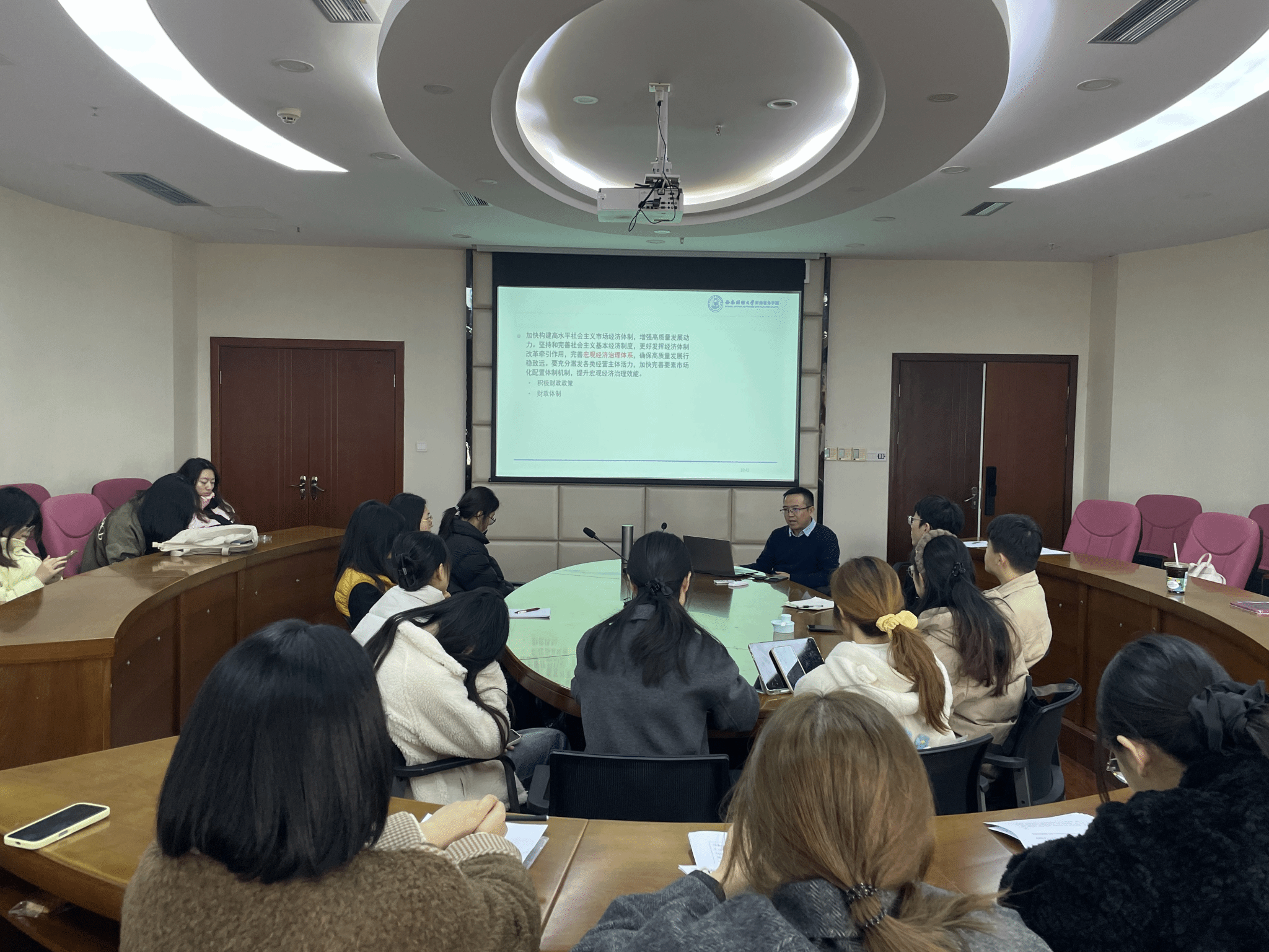 2025年12月2日上午,永利yl23411集团官网院长李建军教授在格致楼918会议室为科硕研究生讲授了一堂思政课,主题为“学习党的二十届四中全会精神与‘十五五’财政改革展望”。